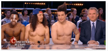 4. Mais c’est Bayrou à droite, de la photo je veux dire ! Il devait être content d’être assis à côté des gugusses, ça le change des politicards. C’était avant le retour de l’ex sur France 2, tout nu lui aussi.