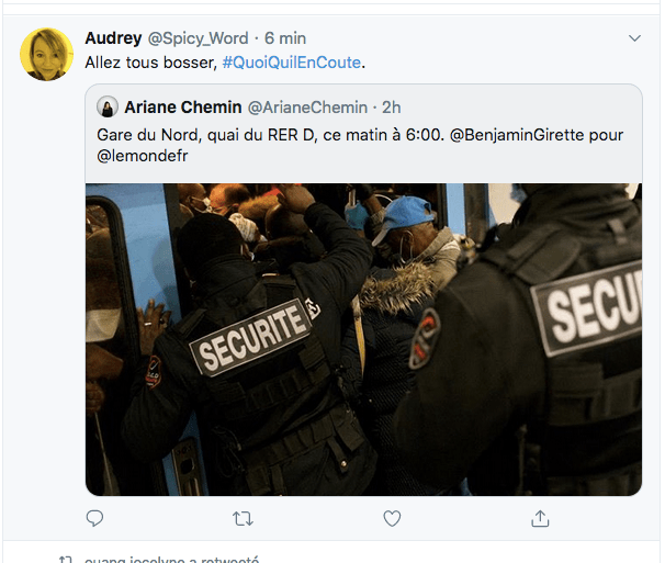 – and now yes you can ? … – Donc, bien raisonné, il n’y a pas de violences policières. … – Autre question fils de pute, vois tu un rapport entre ici et l’Amérique ? … – regarde bien les deux images…