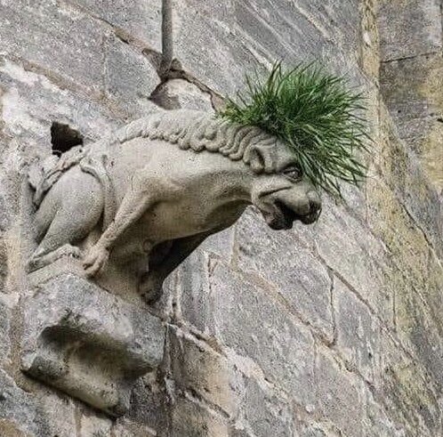 Une touffe d’herbe sur la tête et la gargouille capitaliste se donne comme un air de punk à chien. C’est une de ces ruses que le bloc bourgeois dans sa perversité funeste manie à la perfection. Se travestir superficiellement, s’acheter la panoplie tendance, pour se perpétuer et continuer à se bâfrer sur la bête.