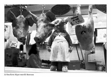 Mais peut être aussi que le petit monsieur, s’il lâche ses instincts les plus primaires, voudrait bien basculer derrière l’étal et se la goinfrer sauvagement la toute boudinée ; goûter à l’opulence de la chair mure et dodue de madame Norbert, au gros gras grand cul flasque de la pulpeuse gironde. Et c’est comme si que déjà il te nous la tringlait là sur le comptoir dans son quintal