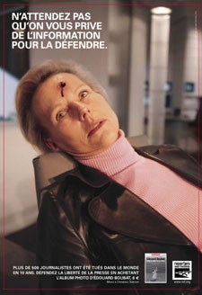 Cette affiche m’a toujours fait marrer parce que je ne vois pas qui aurait l’idée saugrenue d’éliminer la journaliste de révérence Christine Ockrent. (pas plus que Guillaume Durand ou Emmanuel Chain, d’ailleurs les deux autres têtes de gondole de cette ancienne campagne pour la liberté d’inexpression)